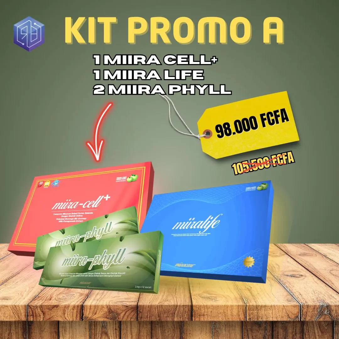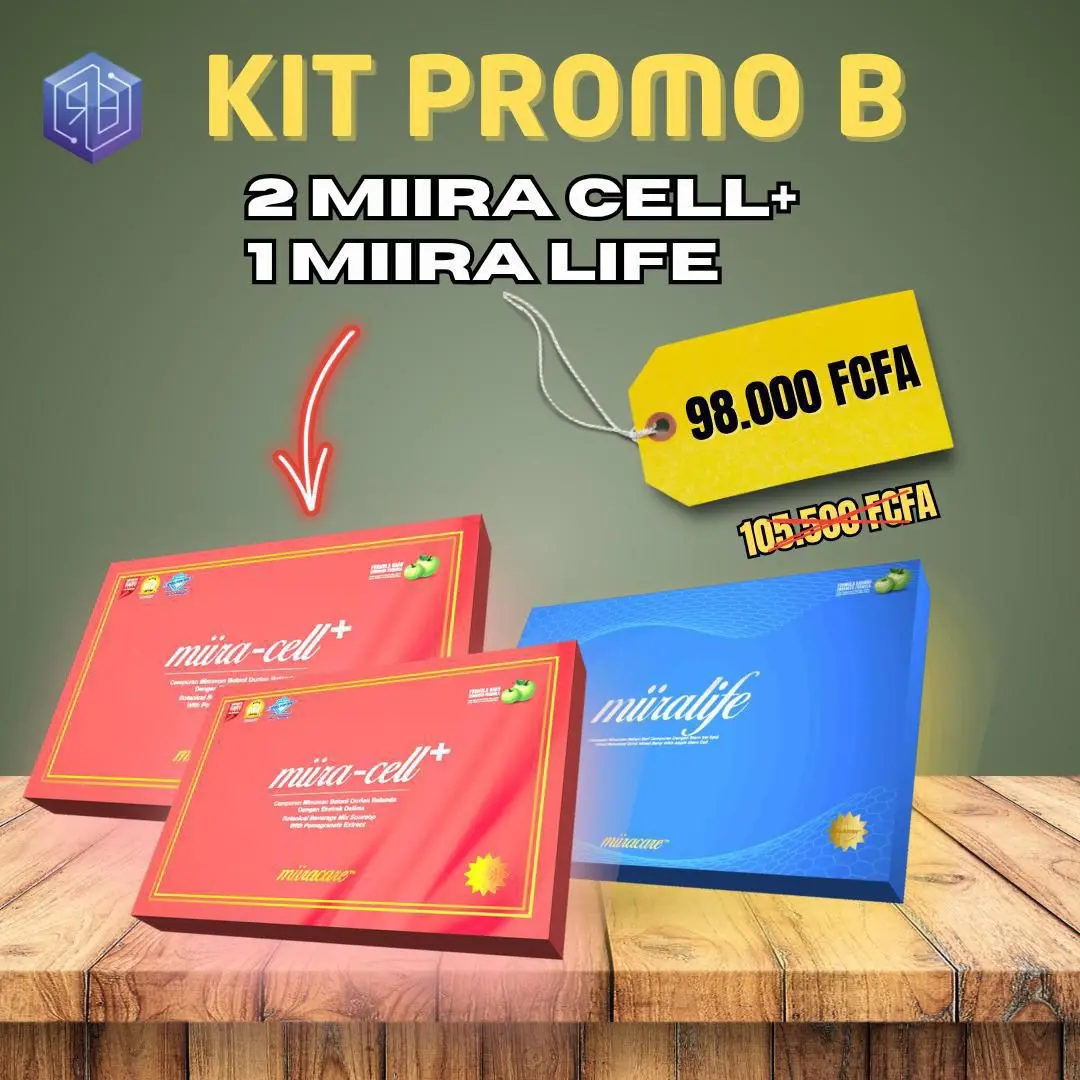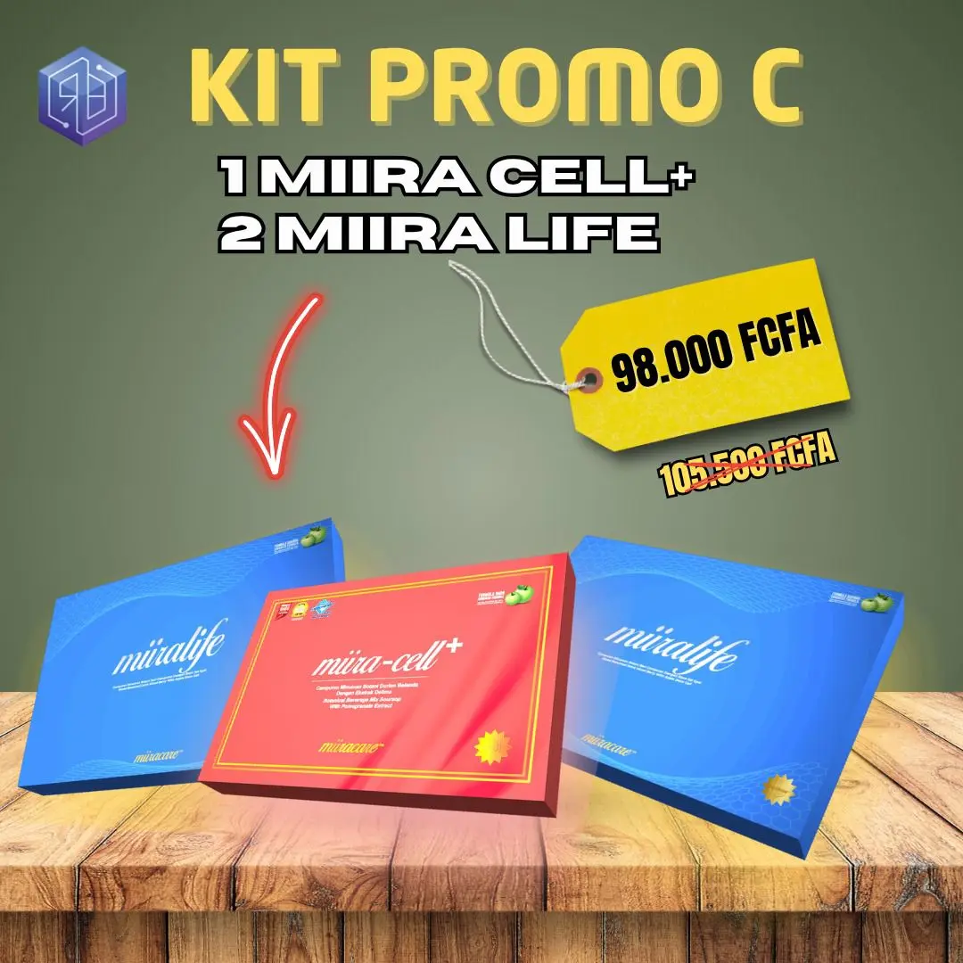 Miira-Cell+ est un complément alimentaire qui favorise le bien-être général en fournissant des nutriments essentiels, des antioxydants et des composés bioactifs. Il aide à promouvoir la régénération cellulaire, à soutenir la vitalité, la santé globale de l'organisme et la fonction immunitaire.